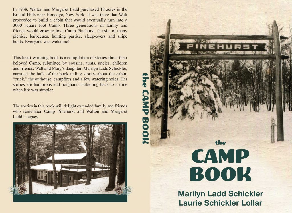 Back Cover: In 1938, Walton and Margaret Ladd purchased 18 acres in the Bristol Hills near Honeoye, New York. It was there that Walt proceeded to build a cabin that would eventually turn into a 3000 square foot Camp. Three generations of family and friends would grow to love Camp Pinehurst, the site of many picnics, barbecues, hunting parties, sleep-overs and snipe hunts. Everyone was welcome!